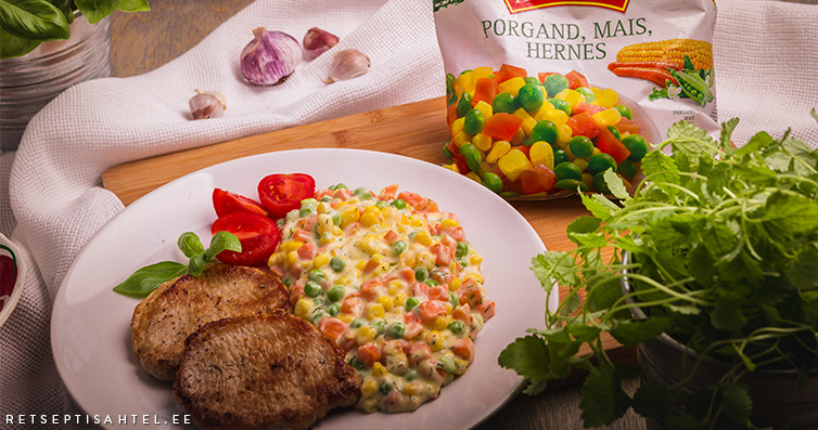 Avaleht Hautatud köögiviljad sealihaga retseptisahtel-hautatud